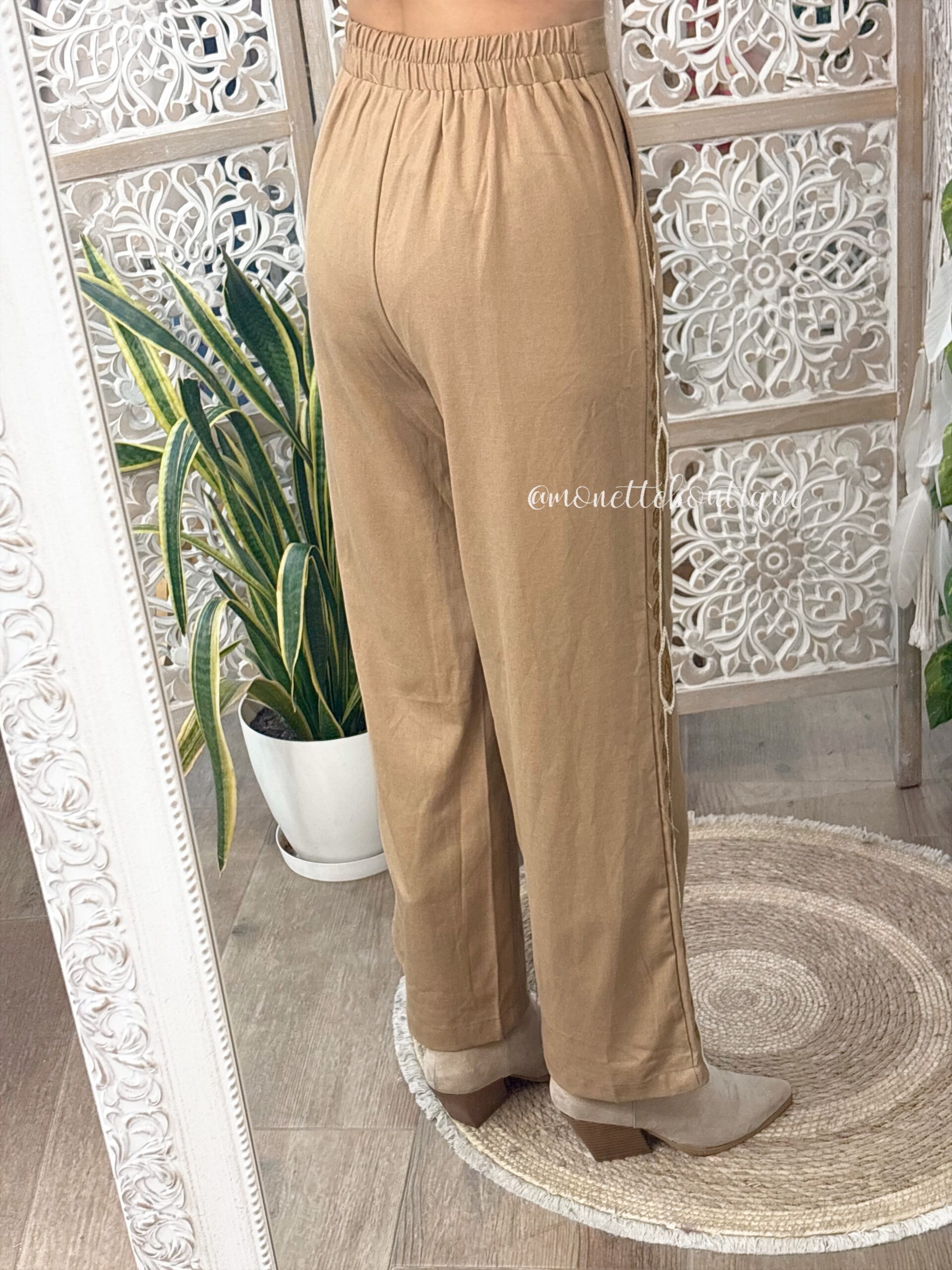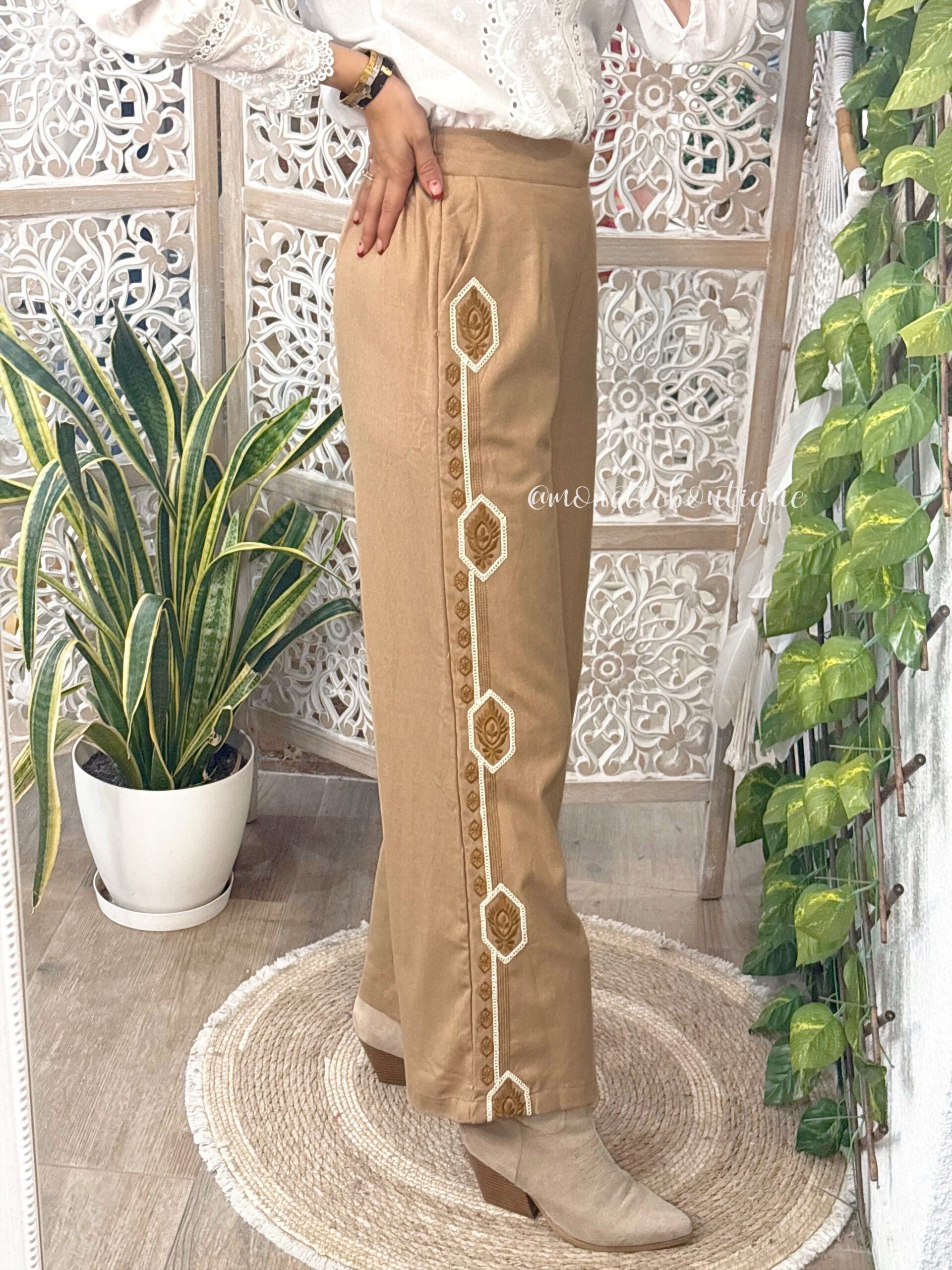 – Pantalón con goma por detrás: cintura de 34cm a 40cm Largo 104cm aprox