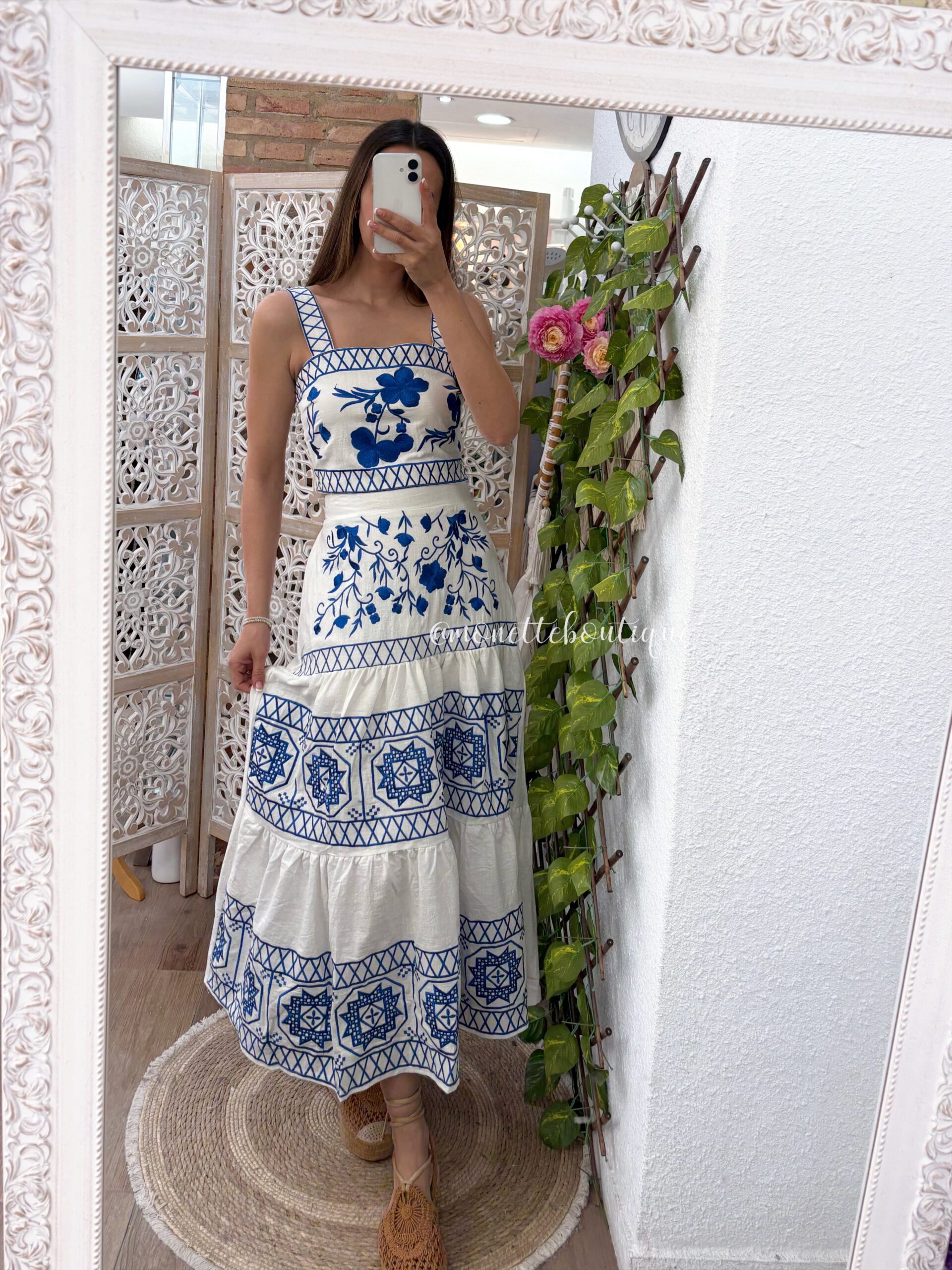 Conjunto bordado de top (con goma en espalda) y falda con cremallera y goma en la espalda