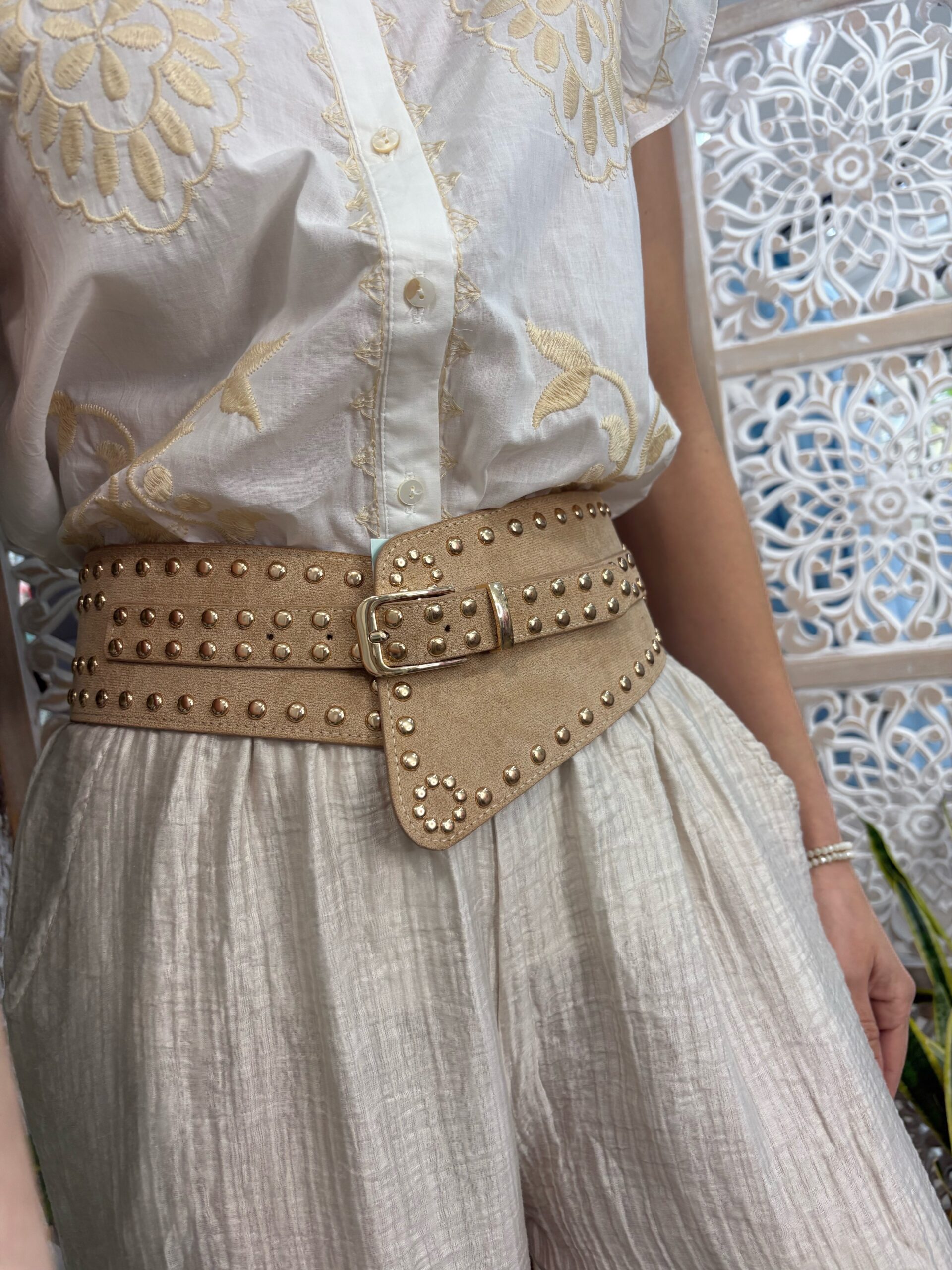 Top crochet beige